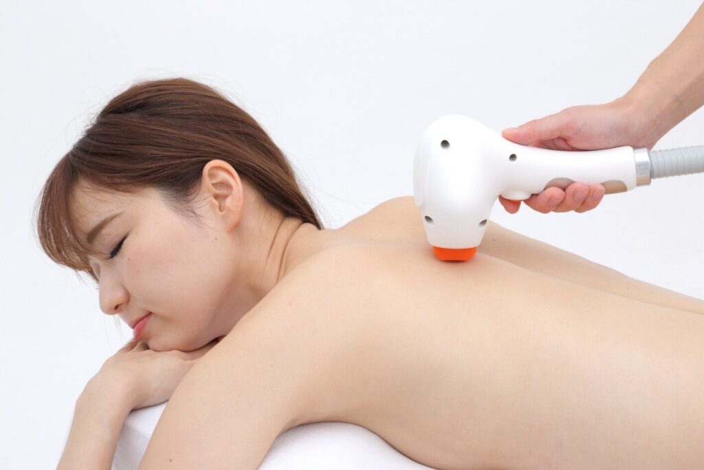 ラジオ波の温熱療法で深部の凝り固まった筋肉をほぐし、張りや痛みを取り除いていきます